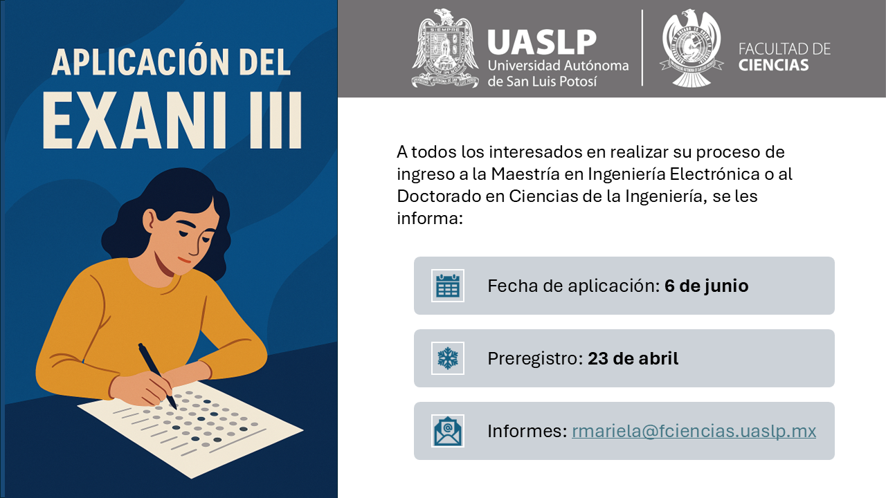 - Lizeth Adriana López López. "Improving spectrum sensing in the low SNR for cognitive radio via superimposed training". Nivel Doctorado. 11:00 hrs.